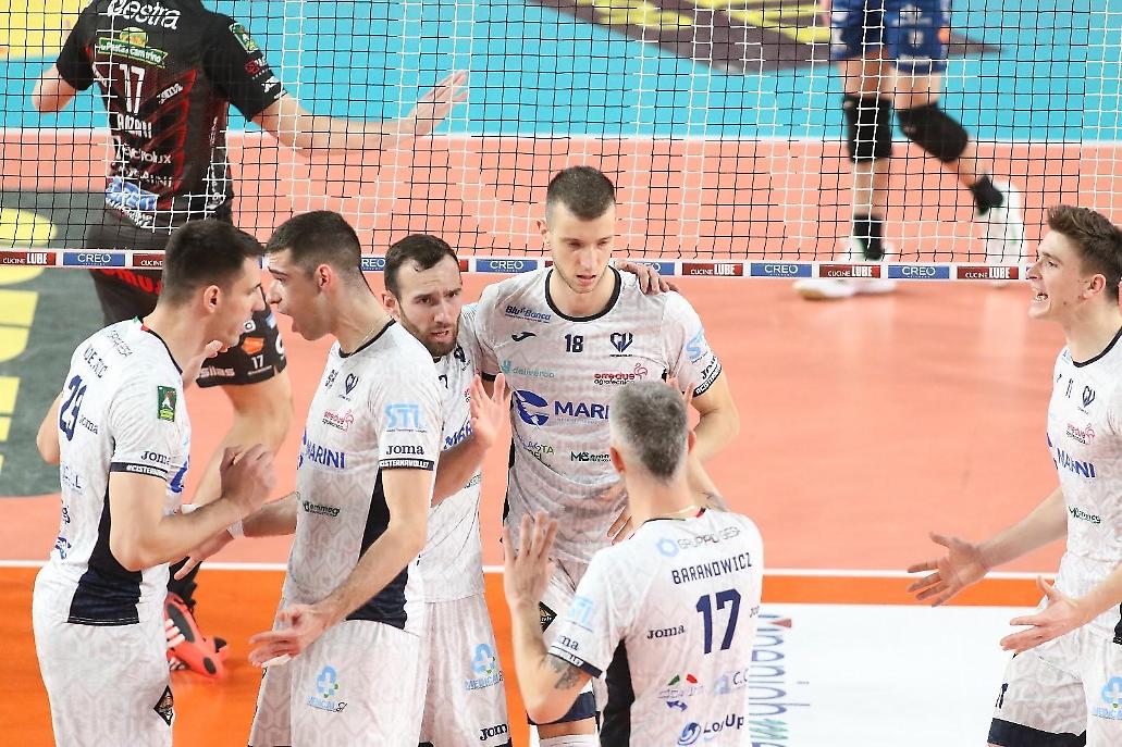 CUCINE LUBE CIVITANOVA: Chinenyeze 8, Thelle, Cremoni (lib.) ne, Motzo, Bisotto, Balaso (lib.), Lagumdzija 22, Nikolov 6, Diamantini 5, De Cecco 2, Anzani 5, Bottolo 20, Larizza ne, Yant 14. All. Blengini