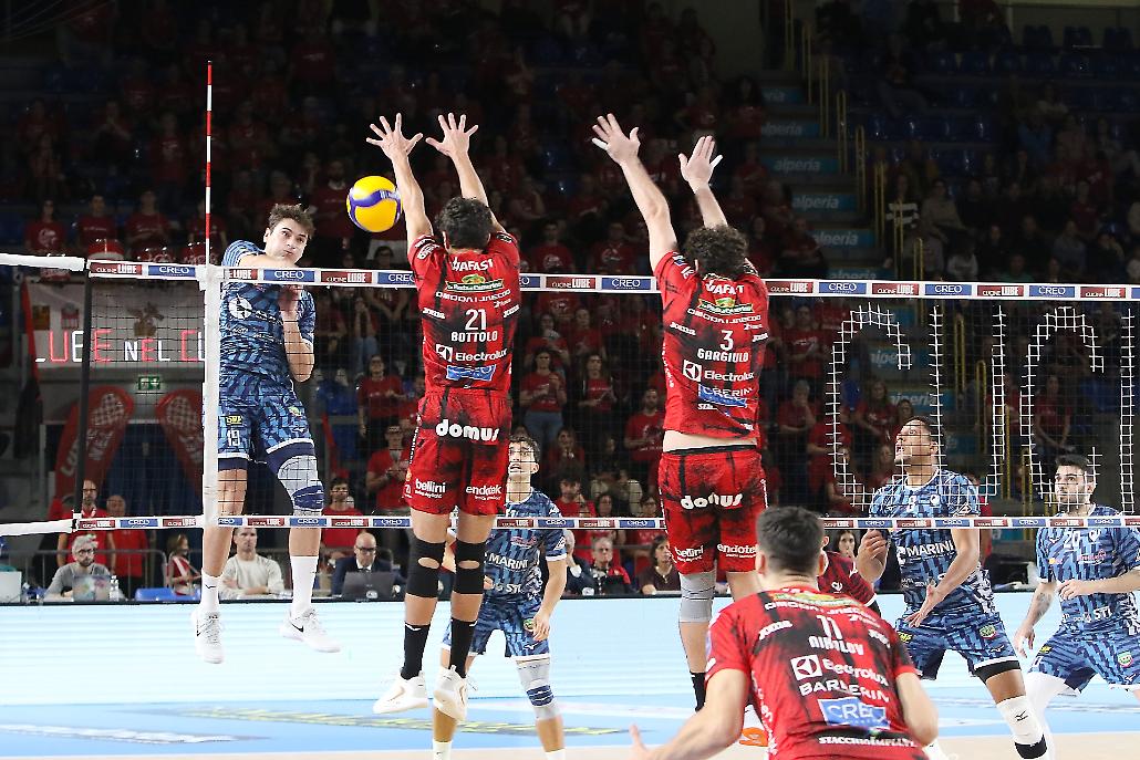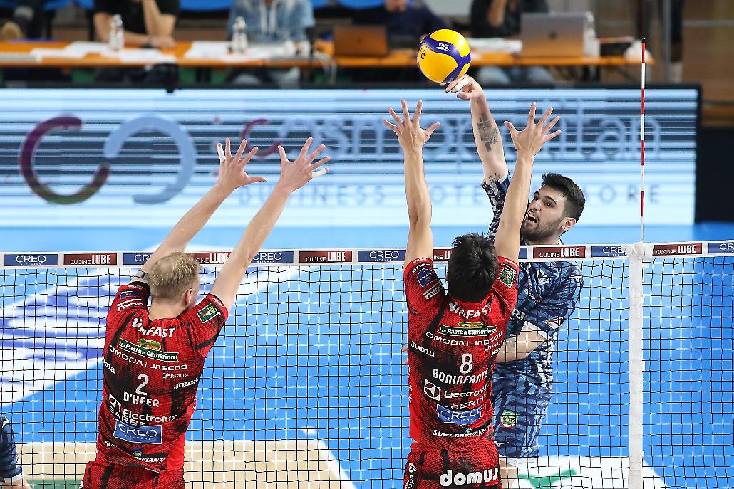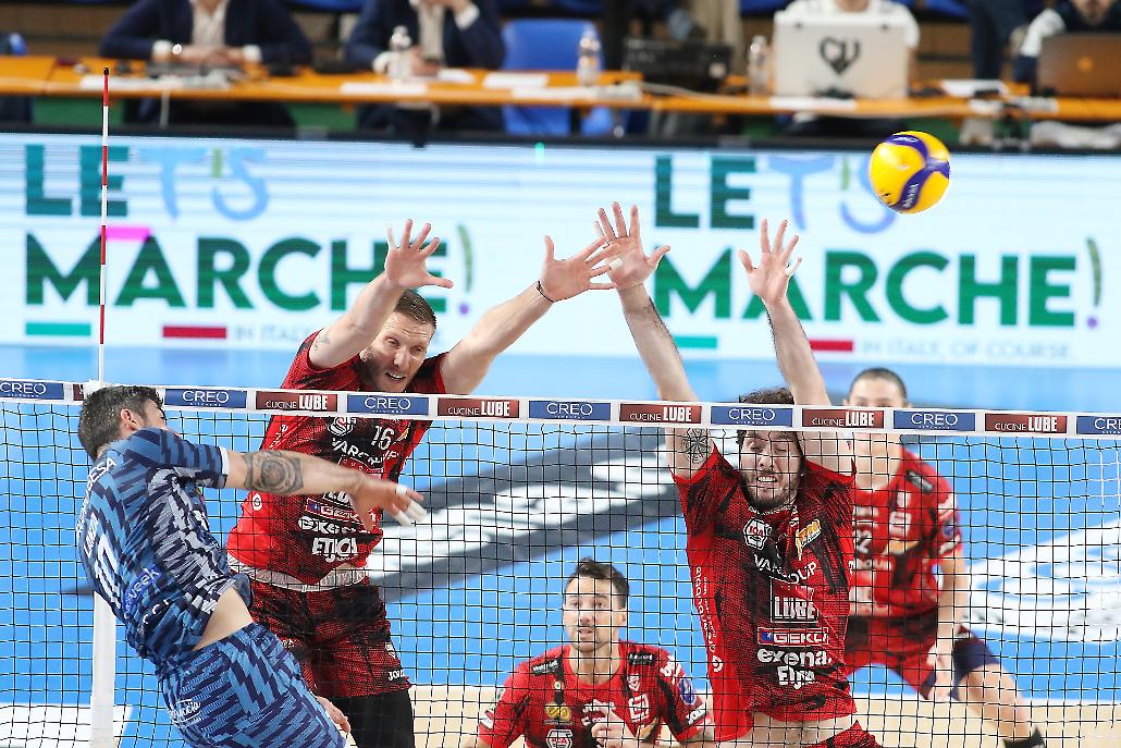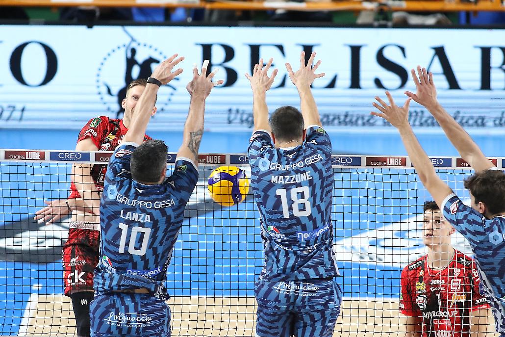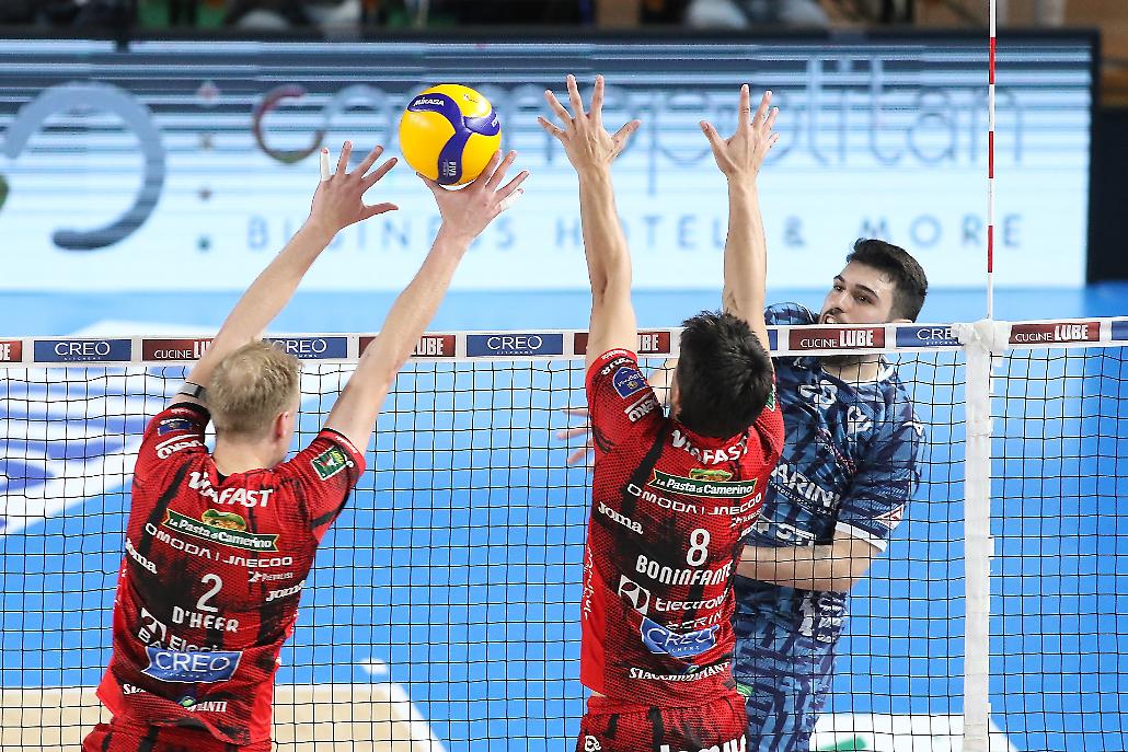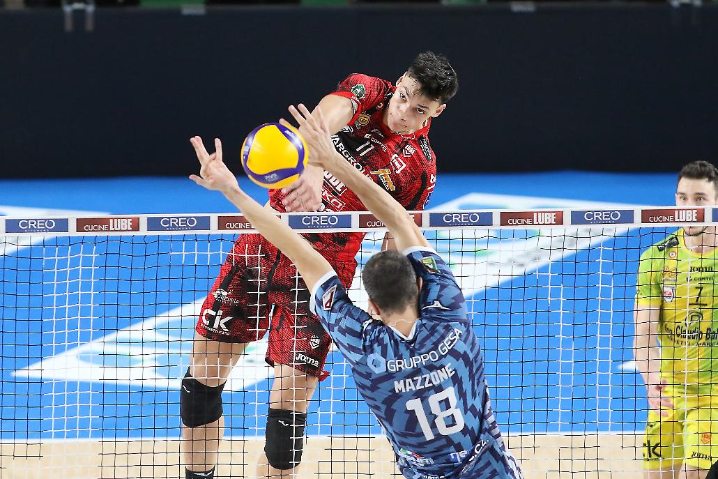 La gara - Daniele Morato sceglie lo stesso sestetto di partenza mandato in campo dall’inizio contro Grottazzolina: Fanizza in cabina di regia, centrali Mazzone e Plak, Guzzo è l’opposto, Lanza e Bayram gli schiacciatori, Currie il libero. Medei risponde con D’heer, Gargiulo, Boninfante, Hossein, Nikolov, Bottolo, e Balaso libero. Cisterna parte bene, Plak firma il primo punto del match, tenta la fuga e si porta a + 3 (5-8): Lanza schiaccia, Plak mura e poi fa saltare la ricezione di casa con una battuta vincente. Medei chiama il time-out, Civitanova aumenta d’intensità, azzera lo svantaggio e si porta avanti (12-11), va in fuga (19-14) e poi chiude 25-17. Il secondo set si gioca punto a punto, nessuno scappa fino al 15-15. Civitanova firma il break, va a +3; Cisterna la riprende (19-19). La Lube mette a segno un nuovo break, la squadra di Morato è ancora lì, ci prova ma resta indietro: Civitanova vince 25-22. Nel terzo set Cisterna parte forte, va subito a + 2, vantaggio minimo che diventa +3 (11-14). Il sestetto di Morato gioca una buona pallavolo, Civitanova resta aggrappata al set e si arriva sul 23-23. La Lube sbaglia in battuta, set-ball Cisterna: il muro di Bayram decide il set (23-25). Nel quarto parziale Civitanova cambia marcia, va in fuga, e mantiene il vantaggio senza mai dare l’impressione di poter concedere qualcosa. Cisterna non molla, ma non riesce a rientrare in partita (25-21).