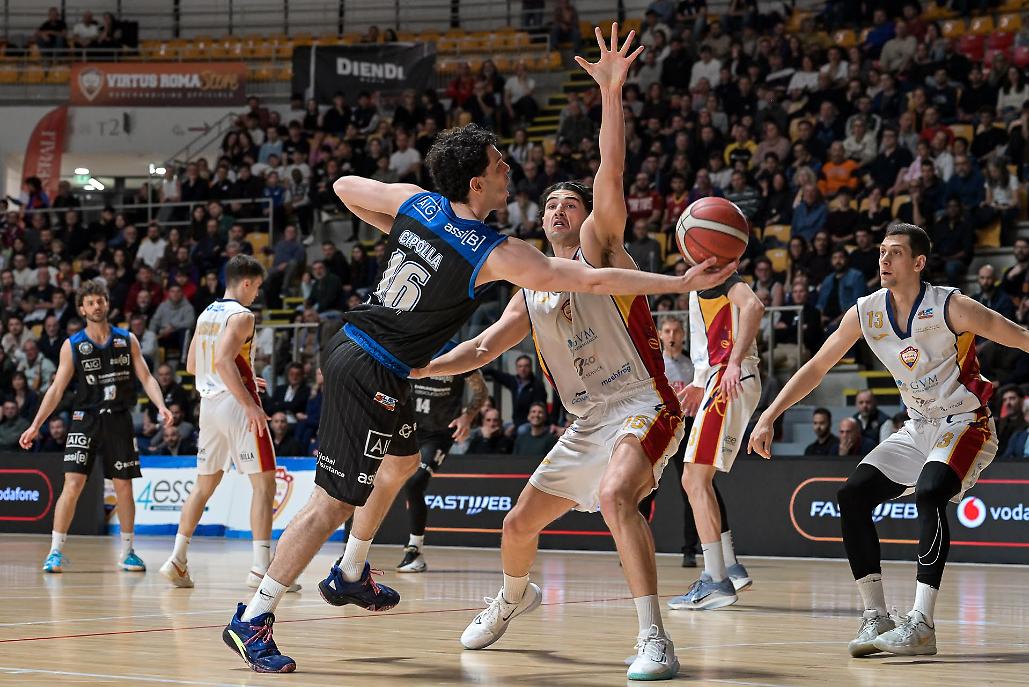 La partita - Primi due quarti di gioco con la Virtus Roma a fare il match, ma con Latina sempre sul pezzo, anche quando, sotto 7-1 (18-11) nel secondo periodo, il quintetto di coach Gramenzi riusciva a tenere duro e a tornare a -3 (21-18) grazie al pieno dalla “linea della carità” di Di Emidio. Roma provava a scappare di nuovo, forte anche delle percentuali, decisamente basse, al tiro di Latina (1/16 da tre, dato sin troppo eloquente, ndr), ma i liberi finali con Bakovi estrememnte preciso, portavano le due squadre all’intervallo con i capitolini avanti di 6 lunghezze: 30-24.