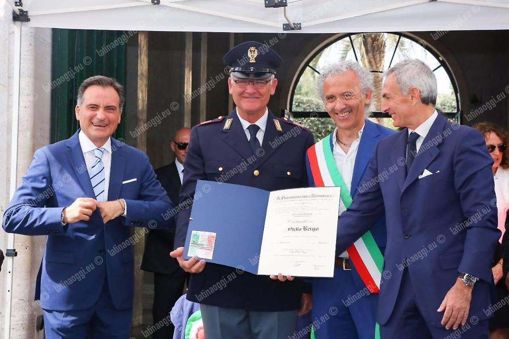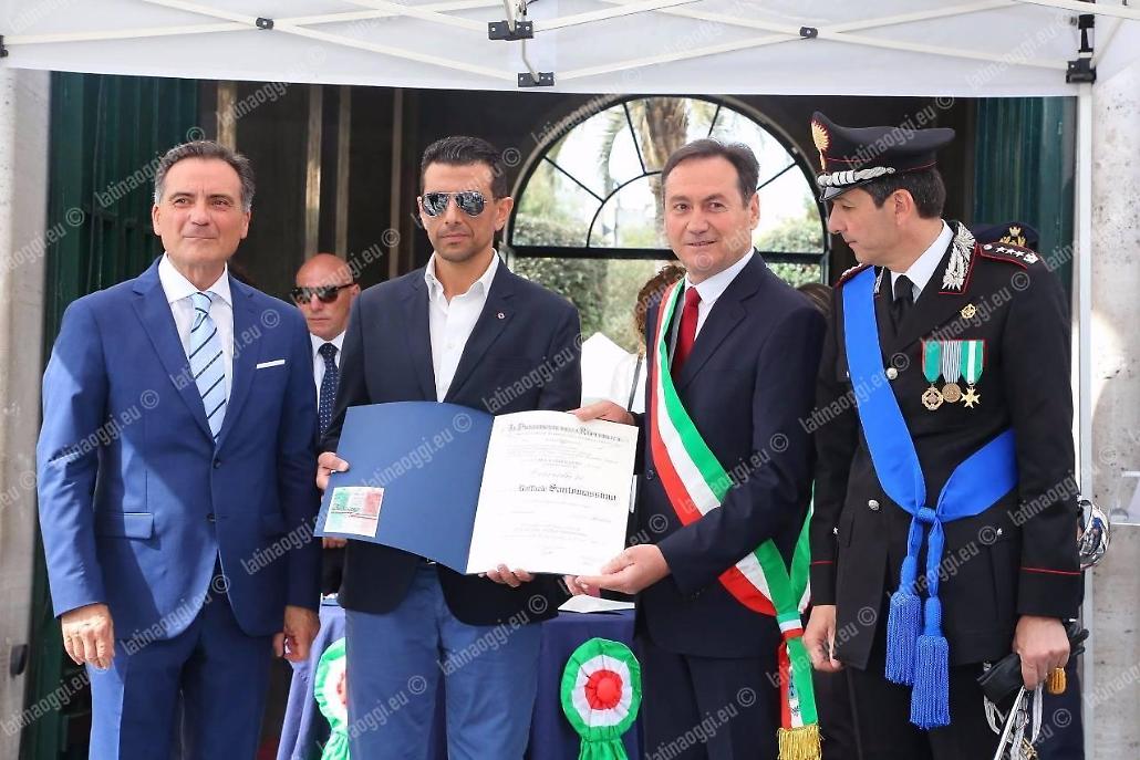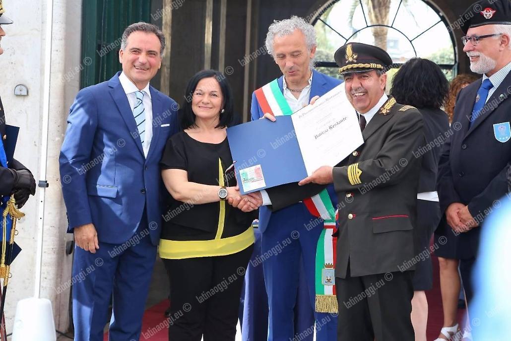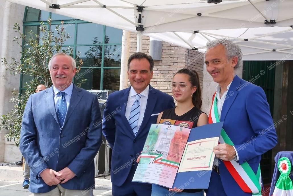 Per il settantunesimo anniversario della Repubblica Italiana piazza della Libertà, ieri mattina, ha fatto da cornice a una manifestazione che, su impulso del prefetto Pierluigi Faloni, era improntata ad avvicinare sempre di più la gente alle istituzioni. È stata l'occasione per «sentirci una comunità coesa e unita, distinta, certamente, per le diverse professionalità ed attitudini, ma capace di condividere gli stessi obiettivi e di volerli realizzare nel solo ed unico interesse della nostra Collettività e del nostro Paese» come ha sottolineato lo stesso Faloni dopo avere passato in rassegna lo schieramento delle forze armate e di polizia. Dopo l'alzabandiera e la lettura del messaggio del Presidente della Repubblica, il Prefetto ha consegnato i diplomi delle onorificenze al merito della Repubblica Italiana a ventidue cittadini pontini e la Medaglia d'Onore ai familiari di un cittadino pontino deportato nei lager nazisti e destinato al lavoro coatto per l'economia di guerra nell'ultimo conflitto mondiale. Poi è stato consegnato l'attestato a Federica Martucci, studentessa del Liceo Artistico di Latina, vincitrice del concorso per licei bandito dalla Prefettura nei mesi scorsi, ha ricevuto. Quindi la spettacolare calata dei vigili del fuoco dal tetto del palazzo del governo per dispiegare il grande vessillo tricolore. Ecco l'elenco delle persone che hanno ricevuto il riconoscimento: