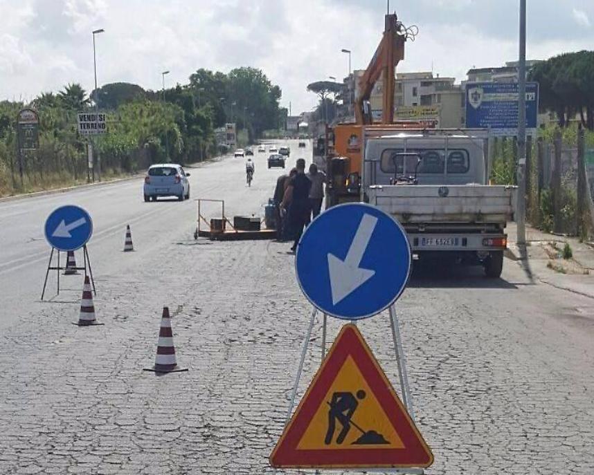 Dalle 11 di questa mattina, 6 giugno 2017, a Nettuno, lungo via Ugo La Malfa, gli operai della Poseidon - la società Partecipata al 100% dal Comune - stanno lavorando per chiudere le diverse buche presenti lungo lo "Stradone" del mercato.