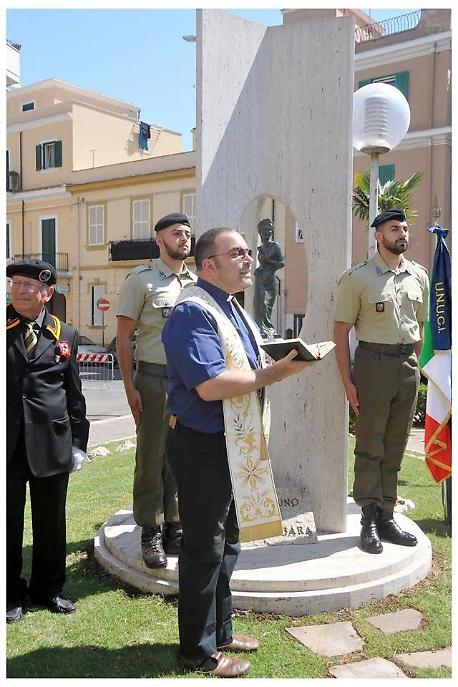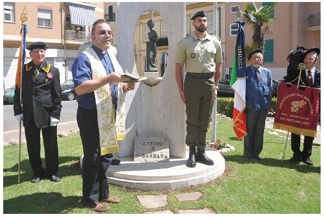A benedire la nuova statua è stato il parroco della comunità di Santa Barbara Vergine e Martire di Nettuno, Don Luca De Donatis, che ha chiaramente esteso la benedizione a tutti i presenti. Dopodiché, il presidente dell'Associazione Artiglieri - Walter Vicini - e l0'assessore Aquino hanno deposto una corona di fiori ai piedi dell'immagine sacra.