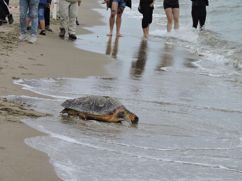 La prima a essere riportata in acqua è stata Algida, chiamata così perché trovata quasi ibernata sulla spiaggia del Serapo, a Gaeta: il personale della Stazione Zoologica Anton Dohrn di Napoli e quello di TartaLazio, insieme al comandante del porto di Anzio - il tenente di vascello Enrica Naddeo - l'hanno accompagnata nelle acque di Lido dei Pini, davanti agli occhi meravigliati di tantissimi bambini.