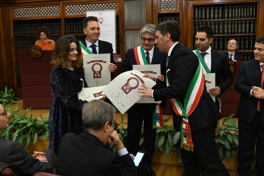 La premiazione si è svolta giovedì scorso, nella Sala Koch di Palazzo Madama a Roma. Presente il sindaco Angelo Tomei, insieme a tanti altri sindaci di tutta Italia e ai primi cittadini di Maenza e Sabaudia, rispettivamente Angelo Sperduti e Giada Gervasi. Per questi altri due Comuni pontini, infatti, ci sono state due nomination importanti, rispettivamente per gli ambiti "Agrifoglio", ossia per la valorizzazione della ricchezza agroalimentare, e "Oleandro", per il sostegno all'economia locale e l'incremento della vocazione turistica. In totale, i premi di questa seconda edizione dell'evento erano dieci, e per ognuno di questi erano stati nominati circa dieci Comuni. Già essere nominati, dunque, significa essere tra i cento Comuni più virtuosi d'Italia. Ma la soddisfazione più grande è stata sicuramente per Rocca Massima, che ha vinto ben due premi. Il primo, consegnato dal Prefetto Sandra Sarti, è quello "Melograno", che ha visto in gara i Comuni che si sono distinti per le attività sociali rivolte a famiglie, giovani, anziani e disabili e per aver favorito l'integrazione. Il secondo è quello "Alloro", presentato dal Maestro Peppe Vessicchio, e riservato alle mete che si sono distinte per la valorizzazione del patrimonio storico e artistico. Quella di giovedì è stata una giornata importantissima per la provincia pontina. Ad aprire l'evento, condotto dalla giornalista Alda d'Eusanio, i saluti istituzionali dell'editore Riccardo Dell'Anna. I premi sono stati consegnati da: Franco Frattini, presidente del Comitato D'Onore e presidente di sezione presso il Consiglio di Stato; il prefetto Sandra Sarti, presidente della Commissione Nazionale per il diritto di asilo presso il Ministero dell'Interno; Roberto Benedetti, Magistrato della Corte dei Conti con funzioni di Consigliere; Antonio Barreca, Direttore Generale di Federturismo-Confindustria; Francesco Saverio Abate, Direttore Generale presso il Ministero delle Politiche Agricole Alimentari, Forestali e del Turismo; Barbara Luisi, Direttore Generale presso il Ministero dello Sviluppo Economico; Andrea Abodi, Presidente dell'Istituto per il Credito Sportivo; Mariano Grillo, Direttore Generale presso il Ministero dell'Ambiente e della Tutela del Territorio e del Mare; Maestro Peppe Vessicchio, Direttore d'Orchestra.