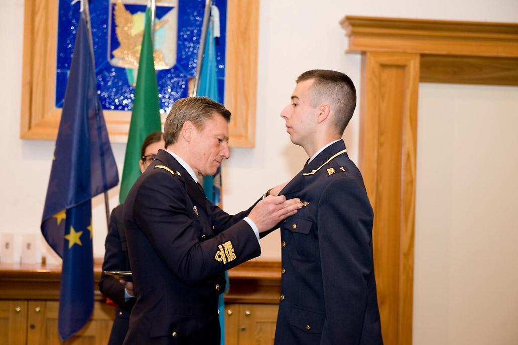 La cerimonia, svoltasi alla presenza di numerose autorità militari, civili e religiose, è stata presieduta dal Generale di Brigata Aerea Enrico Degni, Comandante dell'Accademia Aeronautica, che, in rappresentanza del Comandante delle Scuole A.M./3a R.A., ha personalmente appuntato l'Aquila al primo allievo classificato del 125esimo Corso Allievi Ufficiali Piloti di Complemento. "Dovete essere giustamente orgogliosi del traguardo raggiunto, ma consapevoli che vi attendono nuove sfide - ha dichiarato il Generale Degni ai neo-brevettati - Il mio augurio è che professionalità, serietà ed intelligenza possano sempre continuare ad essere i tratti distintivi della vostra carriera, continuando ad applicare il rigore e la disciplina acquisiti in questa scuola, nell'essenziale rispetto della sicurezza del volo".