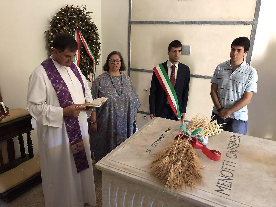 Una cerimonia per ricordare Menotti Garibaldi. Ieri mattina, nella tenuta di Carano, la famiglia Ravizza Garibaldi si è ritrovata insieme alla comunità locale e a diversi appassionati di storia per ricordare il militare e politico - figlio primogenito dell'Eroe dei Due Mondi - nell'anniversario della scomparsa. La giornata è iniziata intorno alle 9.30 nella chiesa di San Giuseppe, che si trova proprio all'interno della tenuta, con una messa in onore dell'uomo, officiata dal parroco di Campoverde. La mattinata è poi proseguita con la visita alla tomba di famiglia, dove dal 1903 riposa Menotti Garibaldi che - morto il 22 agosto a Roma - alcuni giorni dopo (il 26 agosto) venne portato qui per i funerali. Un corteo funebre al quale partecipò anche Gabriele D'Annunzio, immortalato in una foto a cavallo proprio nella tenuta di Carano.