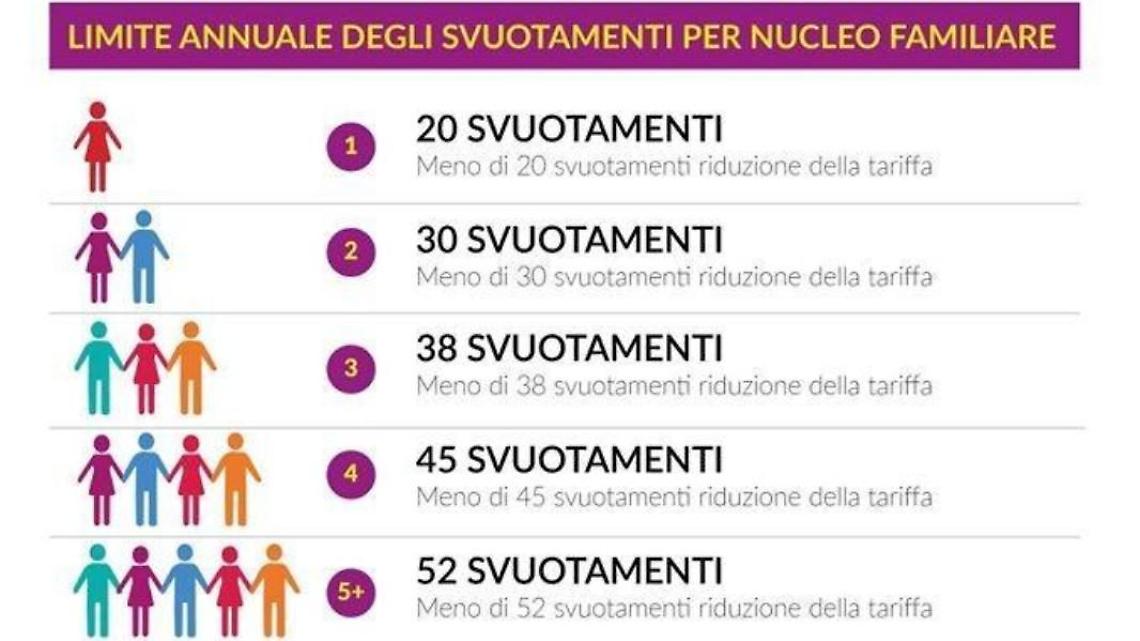 I limiti relativi agli svuotamenti - consultabili anche sui canali istituzionali del Comune - sono stati calcolati a persona, ma anche in base alla composizione delle famiglie.