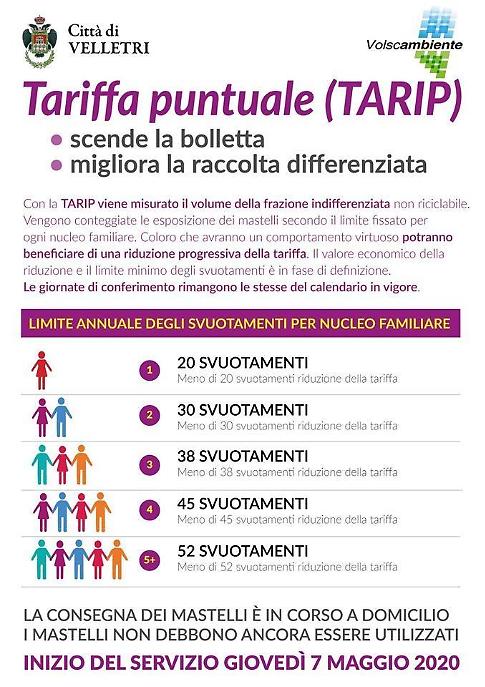«Grazie alla tecnologia inserita nei mastelli - spiegano dal Comune -, con la Tarip sarà possibile di misurare la quantità di rifiuto indifferenziato e premiare, con una riduzione della bolletta, coloro che avranno comportamenti virtuosi. Inoltre, si prevede che la Tarip comporterà una sensibile riduzione dei rifiuti indifferenziati con evidenti benefici per l'ambiente».