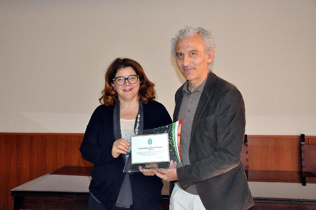 Questa mattina il Sindaco Damiano Coletta si è recato presso il Comando provinciale dei Vigili del Fuoco per consegnare una targa di ringraziamento alla Comandante provinciale di Latina, Ing. Clara Modesto, in segno di gratitudine per il lodevole e impegnativo lavoro svolto in occasione dell'evento per la Befana 2020, in Piazza del Popolo.