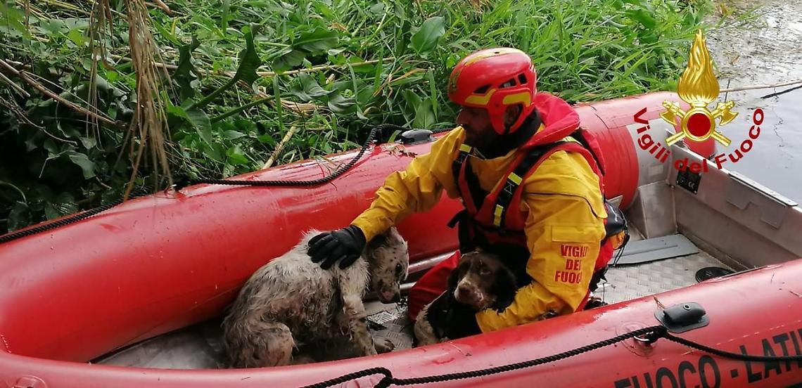 Il primo caso è stato registrato nel Comune di Sezze, dove sono stati recuperati dai soccorritori acquatici due cani da caccia finiti in un laghetto. Il secondo caso ad Aprilia, dove è stato salvato un cane precipitato in un fossato.
