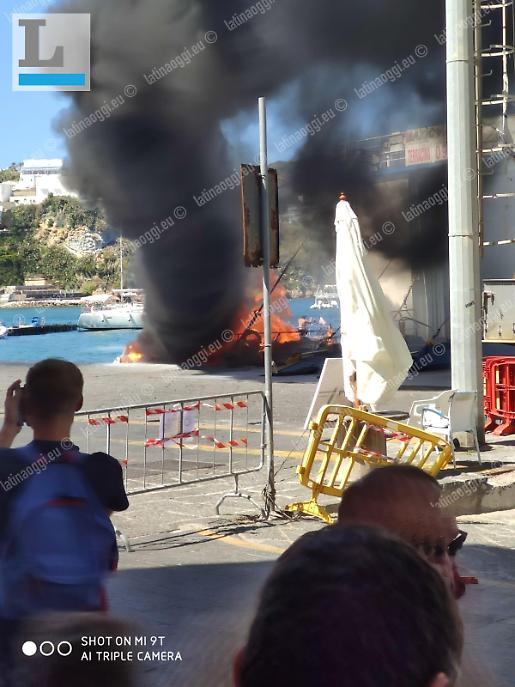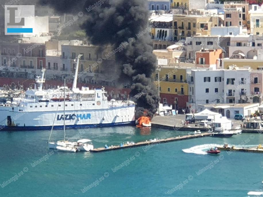 Prima il forte boato, poi le fiamme e una colonna di fumo nero. E' accaduto circa 20 minuti fa, al Porto di Ponza, dove - probabilmente a causa di un cortocircuito - un motoscafo ha preso fuoco mentre stava facendo rifornimento sulla banchina.