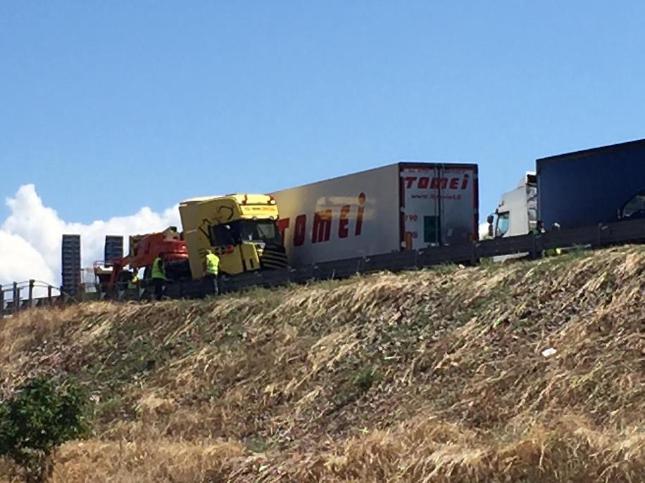 I fatti avvenuti queta mattina sulla 156: i mezzi pesanti, provenienti da corsie opposti, si sono scontrati frontalmente