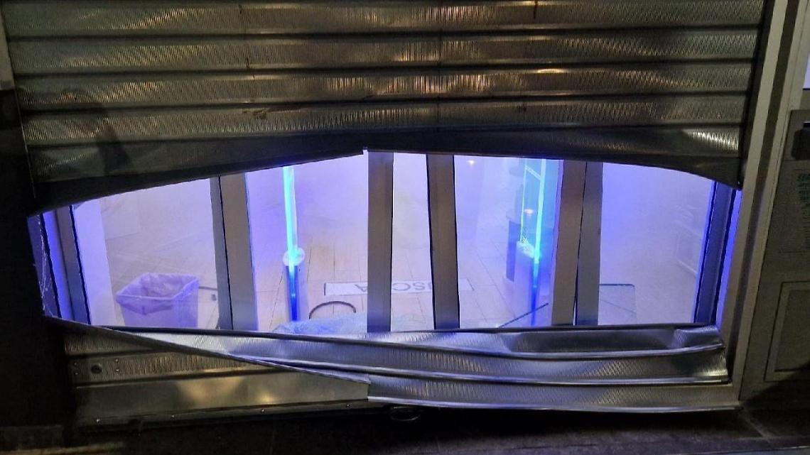 Danni alla saracinesca e all'ingresso della Pharma Quarta, è il terzo colpo in 3 anni. Lo sfogo dei titolari: «Spendiamo in sicurezza, qual è il risultato di tanti sacrifici?»
