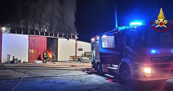 All'arrivo delle quadra l'incendio era generalizzato e stava coinvolgendo i materiali all'interno della struttura. Da subito sono iniziate le operazioni di spegnimento valse a contenere il rogo.