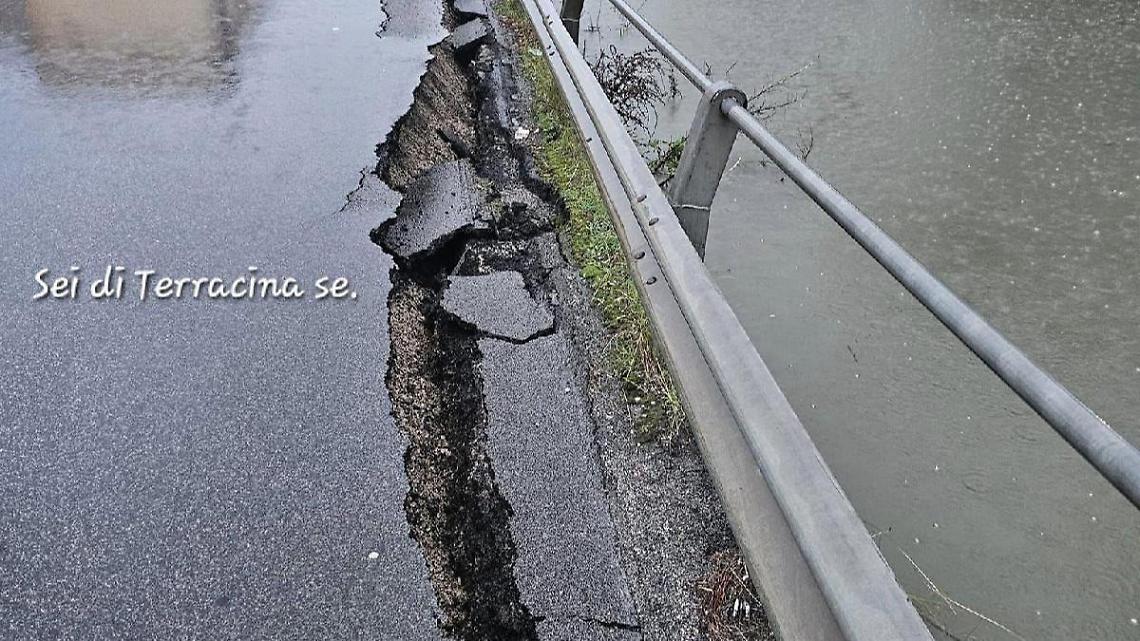 Cede l'argine e la strada crolla. Succede a Terracina, in via Ponte Rosso, così come testimoniato dalle foto pubblicate sulla pagina Facebook "Sei di Terracina se.". La via è stata transennata fino a via Pantanelle.