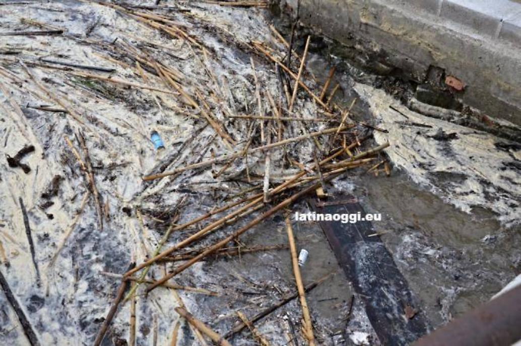 Oltre alla sostanza schiumogena, non mancavano tantissimi rifiuti (spiccavano bottiglie di metallo e grossi pezzi di legno) ma anche i resti dei canneti strappati dal fosso durante il suo corso.