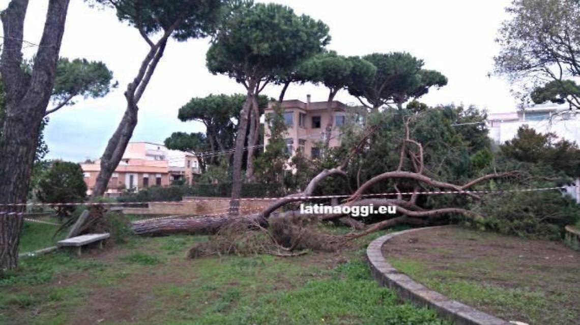 Nelle scorse ore, a Nettuno, un altro albero è caduto a terra. Si tratta di un maestoso pino che si trova all'interno dei giardinetti di via della Liberazione, all'angolo con via Scipione Borghese.