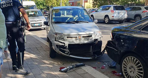 L'incidente si è verificato all'altezza dell'incrocio con via Cellini, la traversa da dove un suv Kia Sportage è sbucato senza rispettare la precedenza, tanto da urtare la fiancata destra di una Fiat Panda che sopraggiungeva in quel momento su viale XXI Aprile dai giardinetti in direzione di Palazzo "M". In seguito all'impatto laterale, l'utilitaria ha urtato contro un'altra Panda e una Mercedes parcheggiati lungo la carreggiata.