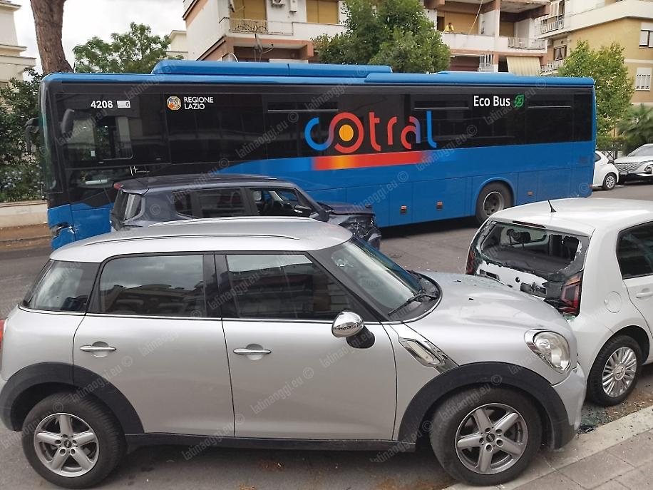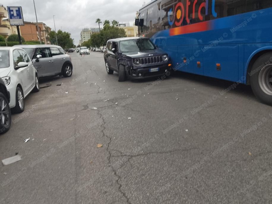 Un rocambolesco incidente stradale si è registrato nella tarda mattinata di oggi in via Isonzo, alle porte del centro di Latina, nel tratto compreso tra gli incroci con via Giotto e via Tucci. In circostanze in fase di ricostruzione da parte della Polizia Locale, intervenuta con pattuglie a sufficienza per i rilievi e la gestione della viabilità, una Jeep Renegade e una Mini Countryman si sono scontrate con un autobus della linea extraurbana regionale.