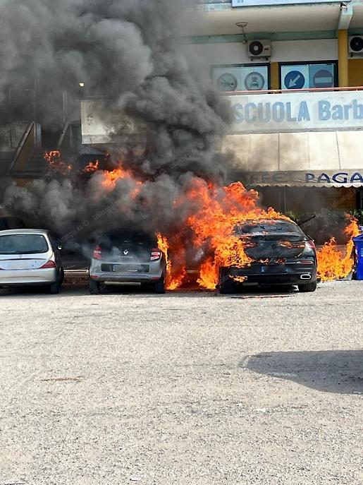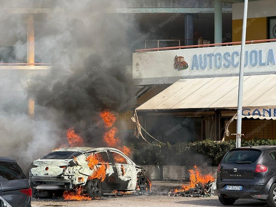 Le fiamme divampate in pieno giorno da un suv Mercedes Gle in sosta in largo Peri, nella zona delle centro Lestrella nel quartiere Q4 Nuova Latina, ha innescato un violento incendio che ha distrutto anche la vettura parcheggiata accanto, una Renault Clio, e danneggiato una terza auto, una Lancia Ypsilon, e una tenda del gazebo del bar antistante.