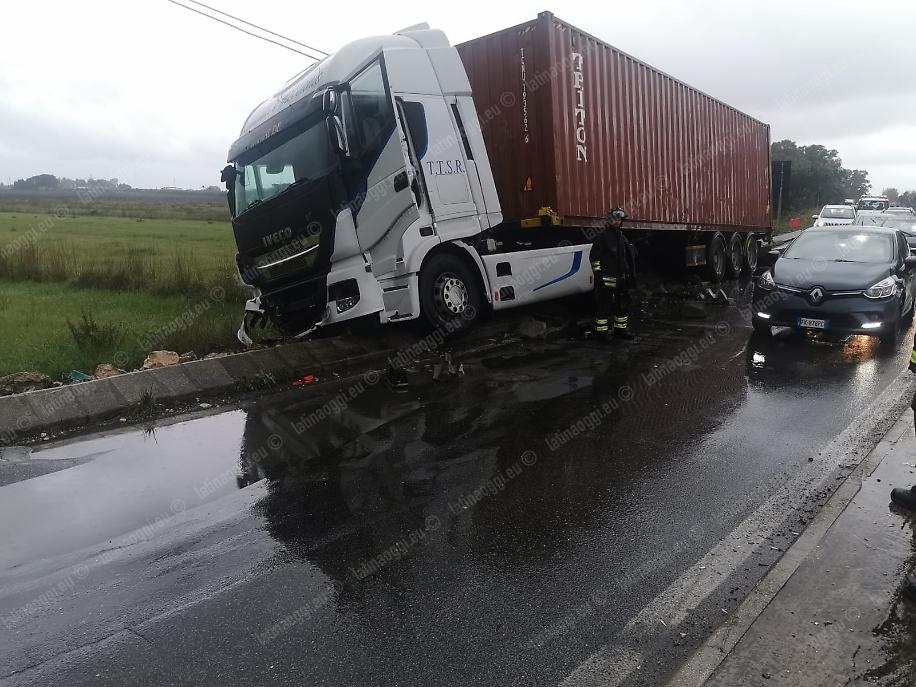 Un camion bloccato sul ciglio della strada ha provocato forti rallentamenti e code sulla strada statale Pontina nei pressi dello svincolo per le strade Piccarello e Piscina Scura, a sud di Latina. Il mezzo pesante ha sbandato verso il lato destro della corsia di marcia ed è finito sulla banchina, restando bloccato a cavallo del cordolo che costeggia la carreggiata in prossimità della rotatoria.