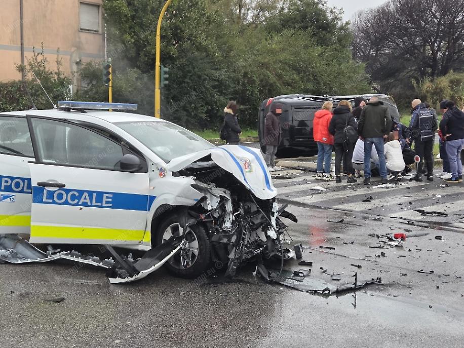 Una pattuglia della Polizia Locale è rimasta coinvolta in uno spaventoso incidente stradale all'incrocio tra viale Kennedy e viale Vespucci, mentre si lanciava all'inseguimento di un uomo in scooter che aveva accelerato alla vista degli agenti, attraversando alcuni incroci col semaforo rosso.