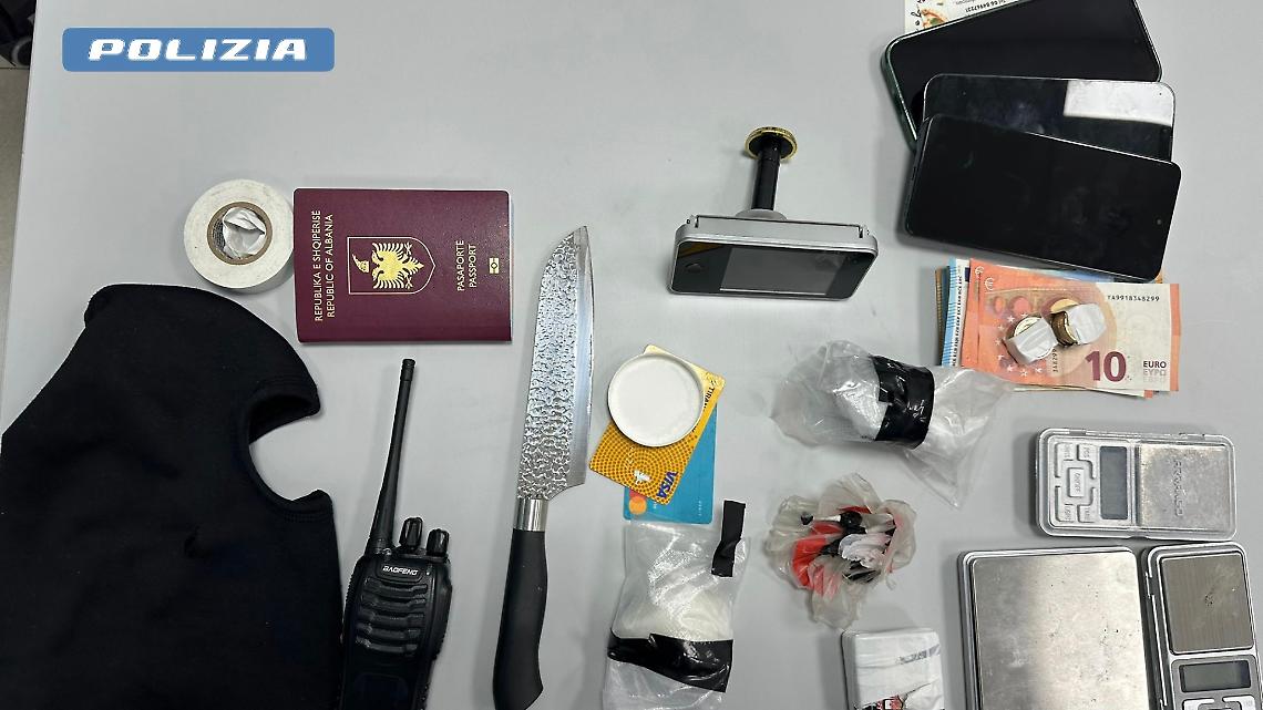 Durante il controllo, gli agenti hanno rinvenuto circa 100 grammi di cocaina, un panetto di hashish da 60 grammi, diverse dosi di cocaina già pronte per lo spaccio, oltre a 280 euro in contanti, quattro bilancini di precisione e materiale per il confezionamento.