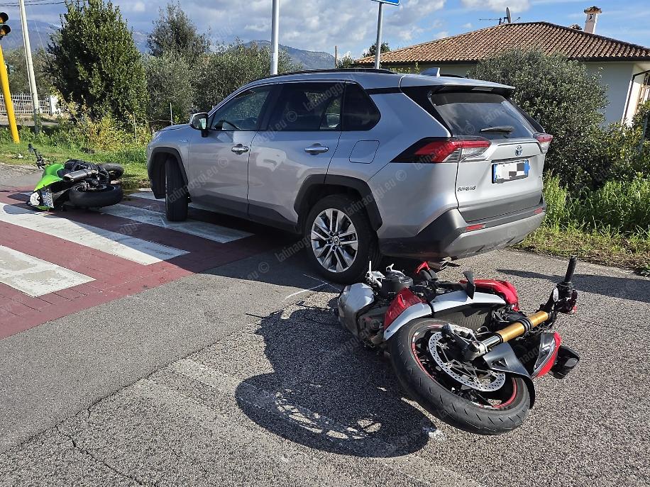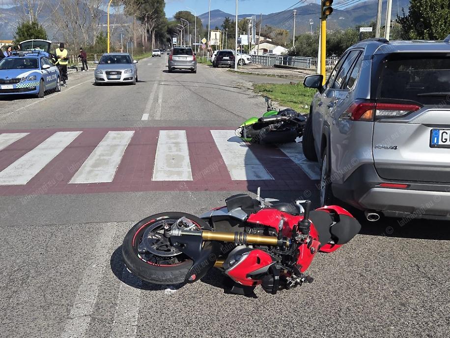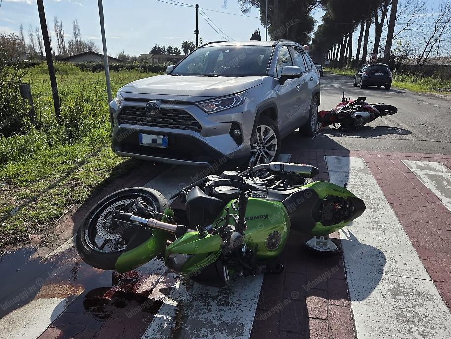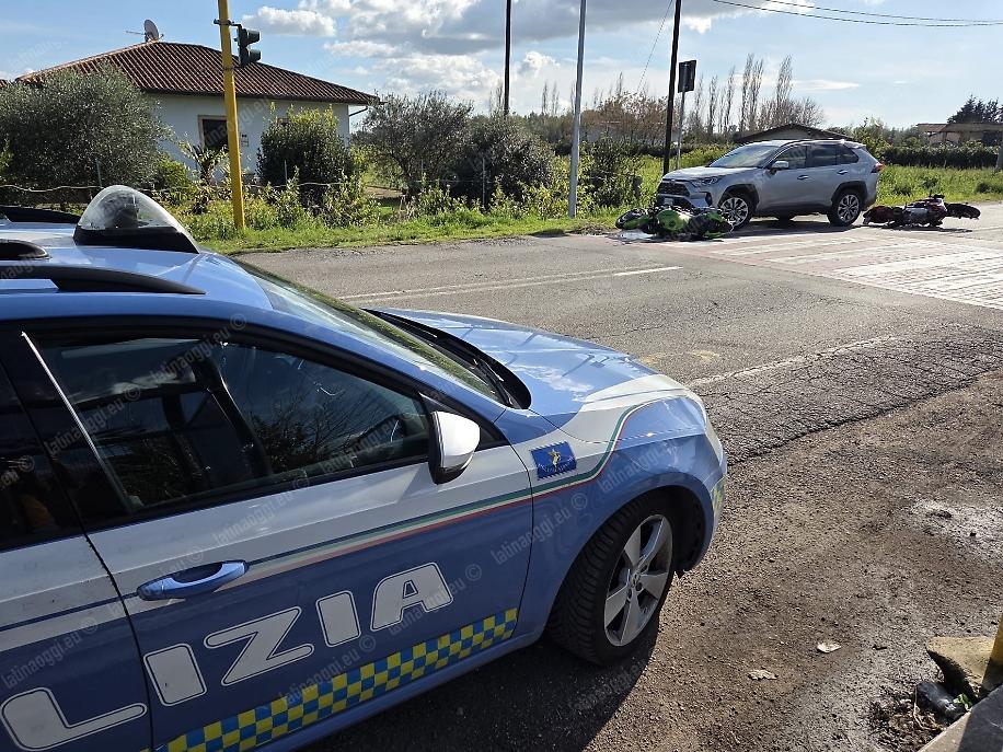 Entrambe le due ruote sono scivolate sull'asfalto per diversi metri, invadendo la corsia opposta, tanto da finire contro un suv Toyota Rav4 che percorreva via Epitaffio in direzione di Latina Scalo: l'automobilista ha sterzato verso il lato destro della carreggiata nel tentativo di evitare le due moto, attenuando l'impatto.