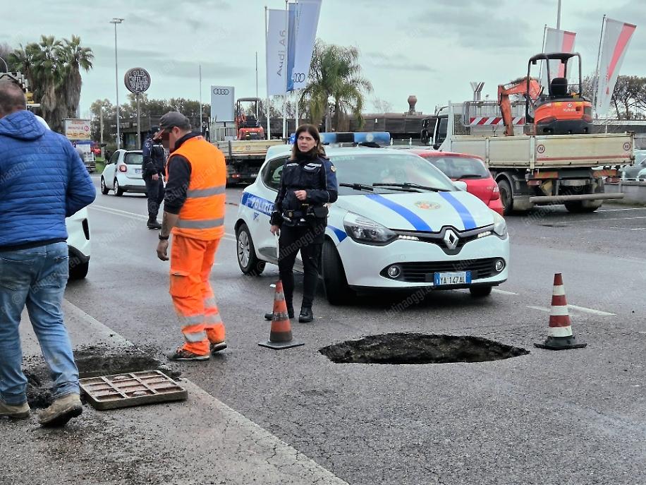 Viabilità in tilt in via Piave, alle porte di Latina, a causa di una voragine che si è aperta sotto la sede stradale e ha richiesto un intervento di manutenzione straordinaria. La scoperta è stata fatta nella tarda mattinata, quando l'asfalto ha iniziato a cedere a causa della cavità che si era creata al di sotto. Alcune auto hanno subito danni, poi è intervenuta la Polizia Locale per delimitare la buca e attivare il pronto intervento.