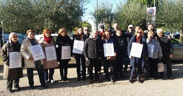 Protesta, questa mattina, del Comitato familiari disagiati psichici sotto il Comune di Aprilia contro il trasferimento in periferia del Centro Salute Mentale e di Neuropsichiatria infantile. Due fasce deboli di cittadini che non vogliono lasciare la sede Asl di via Giustiniano. I familiari dei pazienti hanno tenuto un sit-in silenzioso ma le loro ragioni le avevano impresse su dei cartelli. Al termine dell'inaugurazione del Comune, dopo i lavori di ristrutturazione, i responsabili del comitato si sono anche intrattenuti col sindaco Antonio Terra al quale hanno ribadito le loro ragioni.