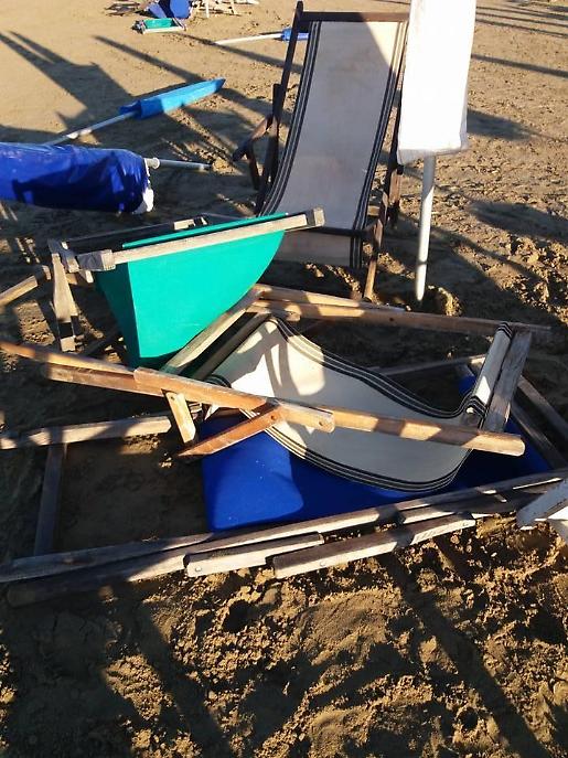 Un atto vile, dunque, che ha visto ombrelloni sradicati, piegati e gettati in terra, sdraio e poltroncine danneggiate - oltre che accatastate - sedie rotte e altre suppellettili messe a soqquadro.