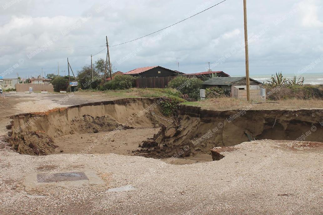 Una frana di vastissime dimensioni ha interessato Lungomare delle Dune, fra Tor San Lorenzo e Lido dei Pini: l'intera parte finale della via è crollata, portando con sé detriti e scoprendo impianti elettrici e idraulici. Tra l'altro, dalla grossa buca è riemerso anche del materiale edile: sicuramente era ben visibile della guaina ma anche scarti di altro materiale, che sembrerebbe somigliare all'eternit. Di conseguenza, nelle prossime ore dovranno essere fatti degli accertamenti.