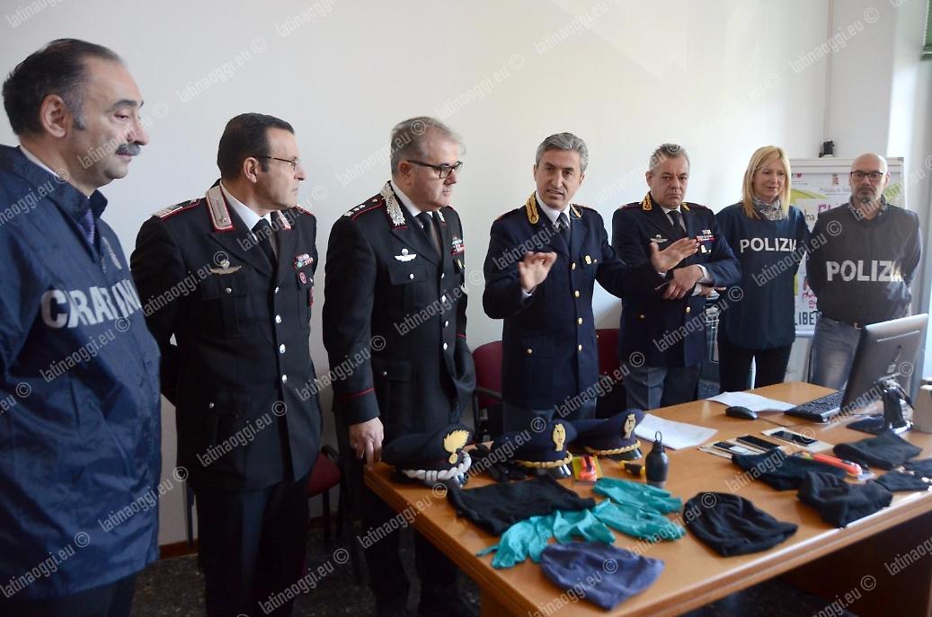 Sono stati arrestati questa mattina dalla Squadra Mobile e il Norm dei carabinieri di Latina tre rapinatori, autori negli ultimi mesi di diversi colpi. Si tratta di Marco Ranieri, 52 anni di Roma, Christian Caloroso, 27 anni di Latina e Vito Franceschetti, 55 anni di Palermo. L'operazione della Questura di Latina e dei carabinieri è stato l'esito di indagini mirate nei confronti di alcuni soggetti sospettati di aver preso parte alle azioni criminali, dediti in maniera costante alla commissione di reati contro il patrimonio e, in particolare, alle rapine a mano armata ai danni di commercianti della città pontina. Tra l'1 e il 3 dicembre, i pedinamenti predisposti nei confronti dei tre avevano permesso di verificare alcuni movimenti sospetti, dando l'idea che gli stessi stessero pianificando un'azione criminale. In effetti, alle prime ore di ieri mattina i tre individui, dopo essersi riuniti a Pomezia, nei pressi della casa di Vito Franceschetti, si muovevano a bordo di una Bmw 320 per raggiungere la frazione Frattocchie di Marino, dove in maniera prudente effettuavano un sopralluogo presso la filiale della Banca Popolare di Milano. Subito dopo facevano rientro a Pomezia entrando all'interno di alcuni parcheggi facenti parte di un complesso di abitazioni di edilizia residenziale pubblica, da dove uscivano divisi fra due auto, una delle quali rubata, raggiungendo di nuovo località Frattocchie, in corrispondenza della Banca. Intorno alle 14.15, Christian Caloro, a bordo della Bmw, si posizionava in via Nettunense Vecchia, alle spalle dell'Istituto di Credito, e poco distante anche Ranieri e Franceschetti, entrambi a bordo della Fiat Punto rubata; questi ultimi due però, poco dopo, si apprestavano a scendere dal veicolo per recarsi verso la Banca Popolare di Milano. A quel punto gli agenti della Mobile e i militari dell'Arma sono intervenuti immediatamente per bloccarli e nel corso della perquisizione sul posto rinvenivano tre cappelli di lana di colore nero, due scalda collo di colore nero, due taglierini, la riproduzione di una bomba a mano del tipo MK2, due paia di guanti in lattice, nonché 3,3 grammi di marijuana celata all'interno del giubbotto che indossava Christian Caloroso. Le successive perquisizioni presso le abitazioni dei tre fermati permettevano di rinvenire solo a casa Marco Ranieri 12,1 grammi di hashish. Il pm della Procura della Repubblica di Velletri, informato dell'esito dell'attività investigativa, ha concordato con l'arresto dei tre indagati per il reato di tentata rapina aggravata in flagranza, disponendo la loro traduzione, dopo le formalità di rito, presso il Carcere di Velletri in attesa del giudizio di convalida.