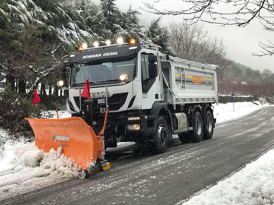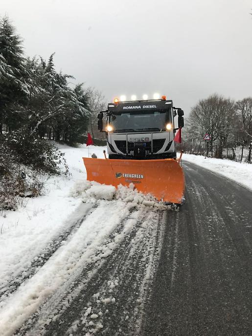 Spazzaneve in azione a Carpineto Romano: anche nel paese lepino in provincia di Roma, fra i più caratteristici del comprensorio, nella giornata di oggi è arrivata la neve.