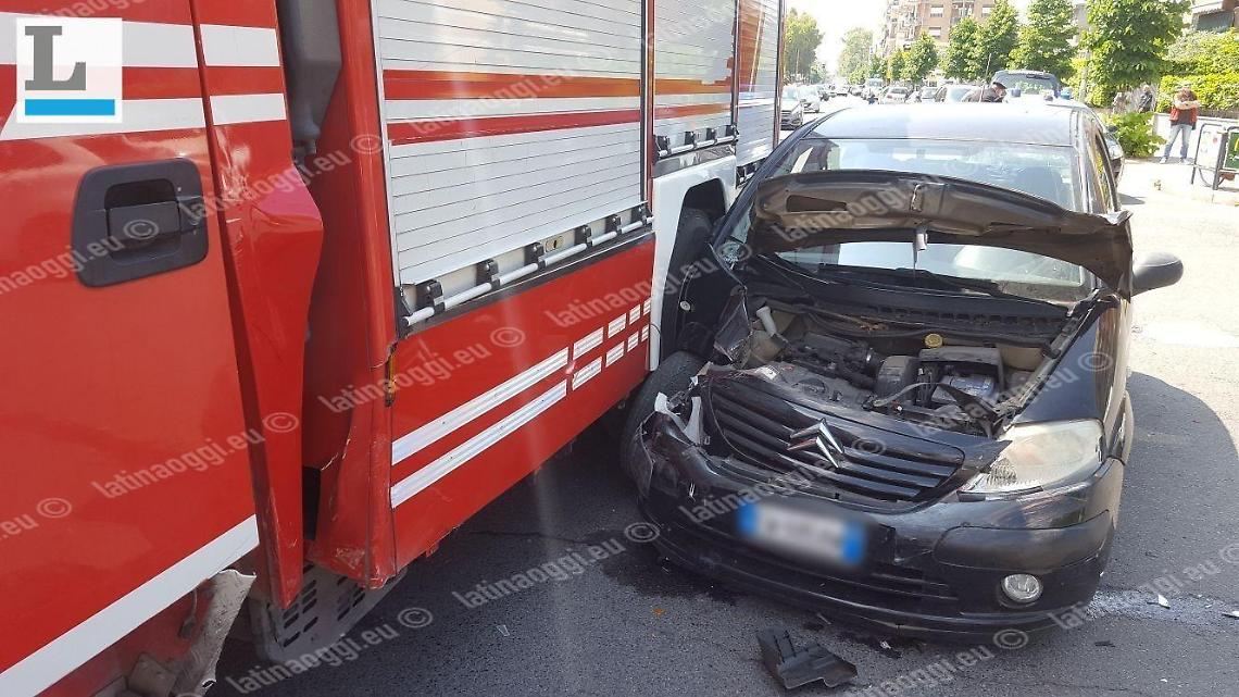 Incidente in centro a Latina tra un'automobile e un mezzo di soccorso dei vigili del fuoco. È successo poco prima delle 11 all'incrocio tra via Tucci e via Isonzo, dove un'autobotte del 115 transitava in emergenza. I soccorritori hanno attraversato l'Intersezione stradale col rosso, ma viaggiavano in sirena quando una Citroen C3 è piombata a forte velocità nell'incrocio: quando si è trovato davanti il camion dei vigili, il conducente dell'utilitaria non ha fatto in tempo a frenare e l'impatto è stato inevitabile. A bordo della vettura sedevano due quarantenni, trasportati in ambulanza presso il vicino pronto soccorso dell'ospedale Santa Maria Goretti di Latina. Per i rilievi sono intervenuti i carabinieri del Nucleo radiomobile, la viabilità ha subito pesanti ripercussioni. Non si registrano feriti gravi.