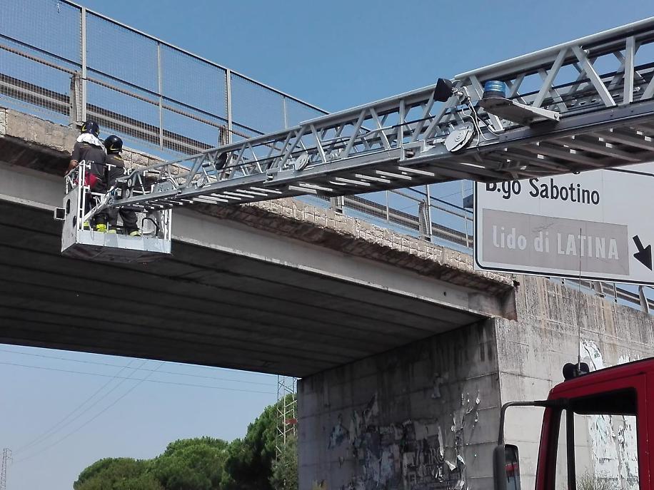 Astral e vigili del fuoco questa mattina hanno controllato il cavalcavia tra Borgo Sabotino e Cisterna dove in alcuni tratti l'intonaco appare molto deteriorato
