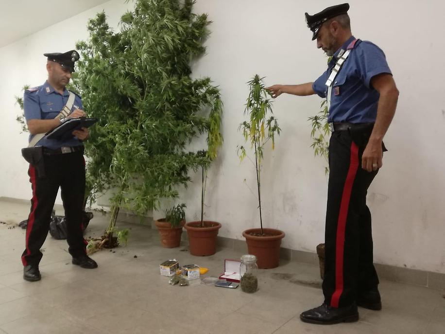 L'uomo, a margine di una perquisizione domiciliare messa a punto dagli uomini dell'Arma lepina, è stato trovato in possesso di otto piante di marijuana dell'altezza di circa due metri ciascuna, ma anche di cento grammi della medesima sostanza essiccata e in parte suddivisa in dieci bustine di plastica. In più, è stato trovato pure del materiale atto al peso e al confezionamento della droga.