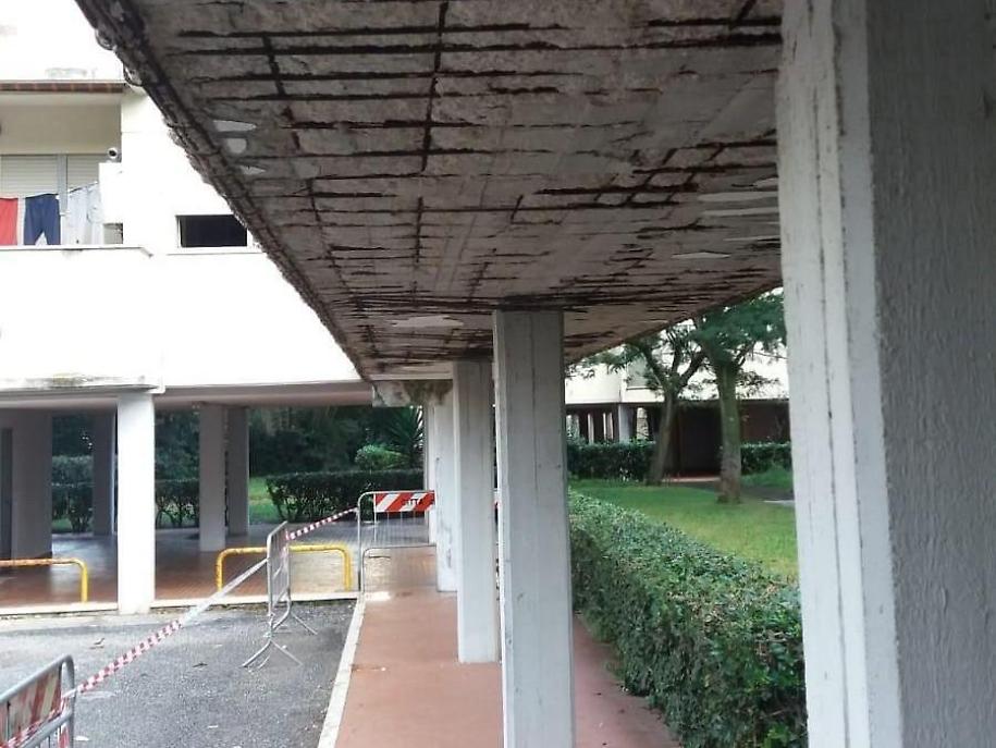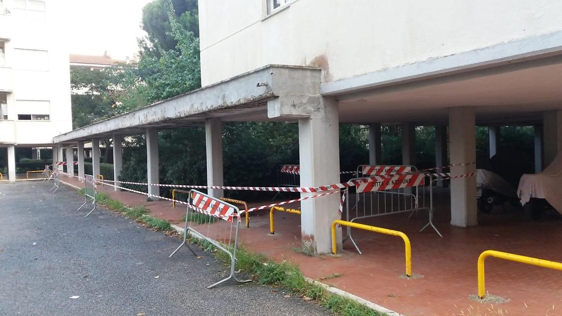 In particolare, si è aggravata una situazione legata al distacco di calcinacci e cornicioni nella zona destinata al transito dei pedoni e al ricovero di auto e moto.