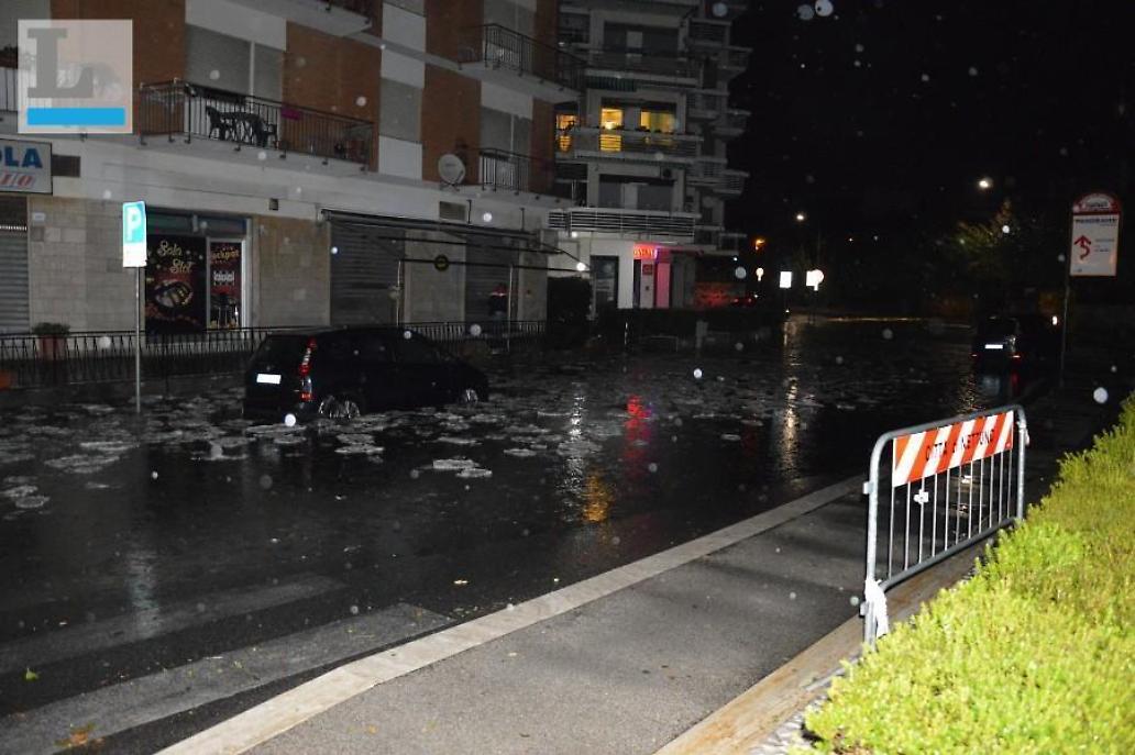 Poi, dopo quindici minuti di grandine, ecco una violenta pioggia accompagnata da raffiche di vento fortissime, nell'ordine di oltre 50 chilometri orari. Strade e piazze hanno cominciato ad allagarsi, diventando vere e proprie trappole.