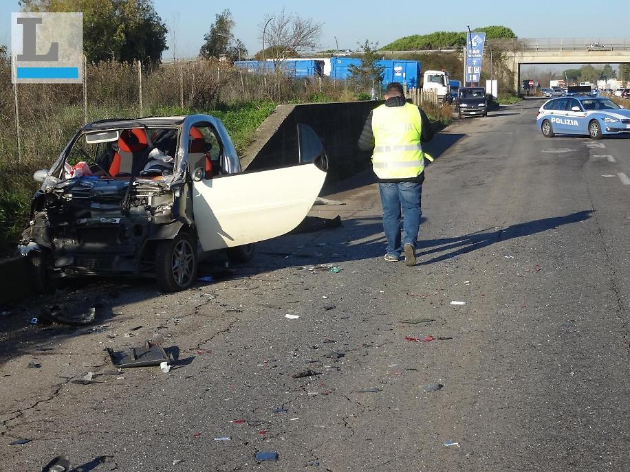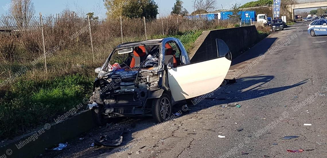 L'incidente è avvenuto al km 56 della via pontina sulla corsia sud. La Smart è finita contro un camion per motivi ancora da accertare.