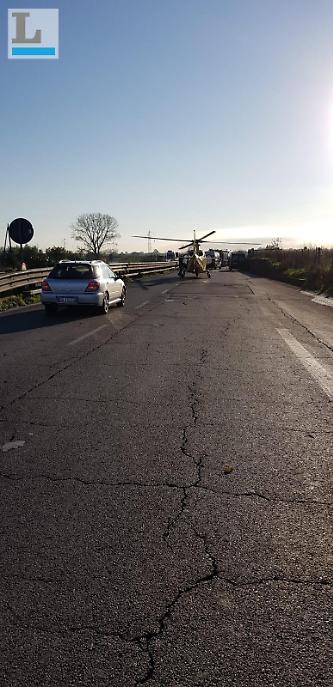 Lo scontro a Campoverde all'altezza del chilometro 56, Il ferito trasferito d'urgenza al San Camillo. Le sue condizioni sono molto gravi