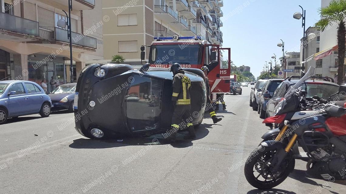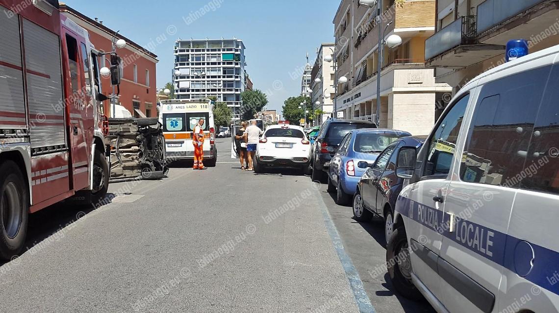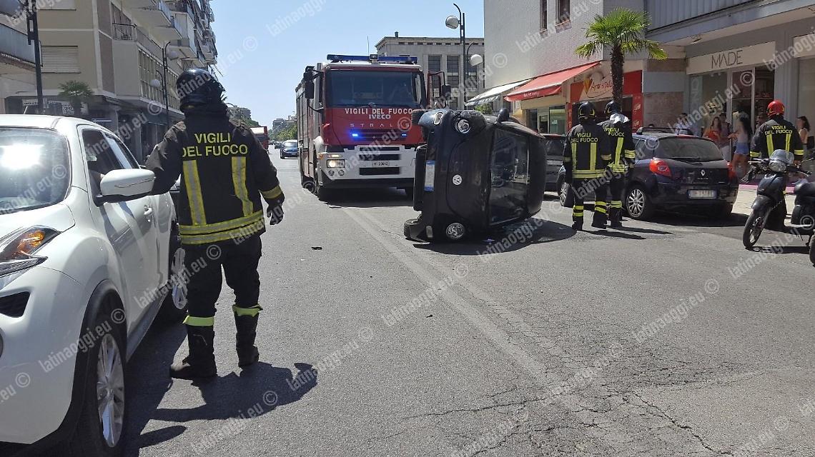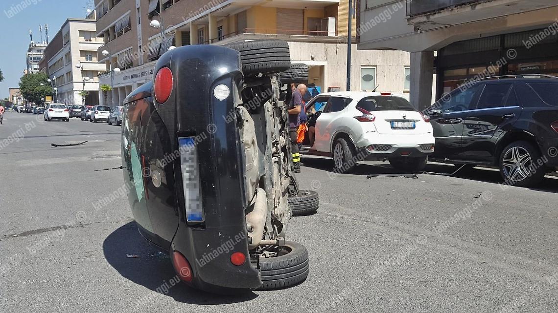 Un'altra automobile si è ribaltata a Latina in un incidente stradale, questa volta in pieno centro. È successo in corso della Repubblica a poca distanza da piazza San Marco, dove una Volkswagen New Bettle in fase di sorpasso ha urtato di striscio una Nissan Juke e poi si è ribaltata su un fianco invadendo l'altra corsia di marcia. La dinamica è al vaglio della Polizia Locale per stabilire le cause dello scontro: resta infatti da chiarire se la Nissan, che per la violenza dell'impatto ha urtato un altro veicolo in sosta, fosse in movimento oppure, come sembra, se fosse ferma a bordo strada o magari se avesse appena accostato. Sta di fatto che entrambe le automobiliste hanno richiesto i soccorsi delle ambulanze del 118 che hanno trasportato le due donne presso il pronto soccorso del vicino ospedale Santa Maria Goretti. È stato necessario anche l'intervento dei Vigili del fuoco per mettere in sicurezza il veicolo coinvolto nella carambola.