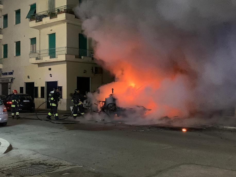 Momenti di paura la scorsa notte nel pieno centro urbano di Nettuno. Per cause ancora in fase di accertamento un camper di proprietà di una donna italiana, che non era a bordo in quel momento, ha preso fuoco mentre era in sosta lungo via Cristoforo Colombo, a due passi dal palazzo municipale e dalla stazione ferroviaria. Era scattata da poco la mezzanotte quando le fiamme sono divampate sul mezzo e si sono levate altissime, raggiungendo il quarto di sei piani di un palazzo di via Trentino, che affaccia con dei balconi proprio verso via Colombo.