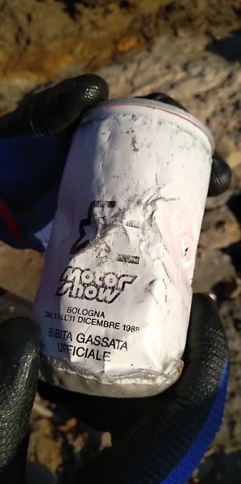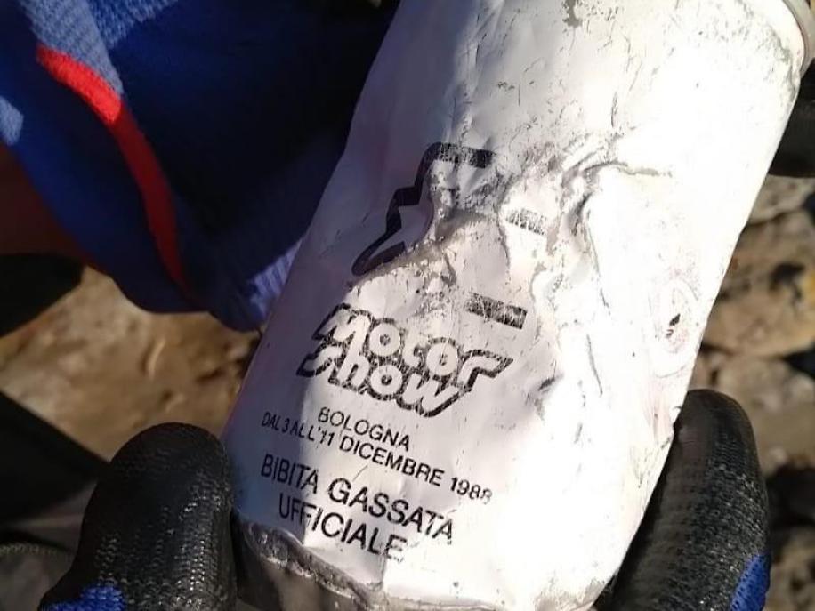 Il mare ha portato sulle rive di Tor Caldara la lattina della bibita gassata ufficiale del Motor Show di Bologna di 31 anni fa. E c'è anche una bottiglia del 2011