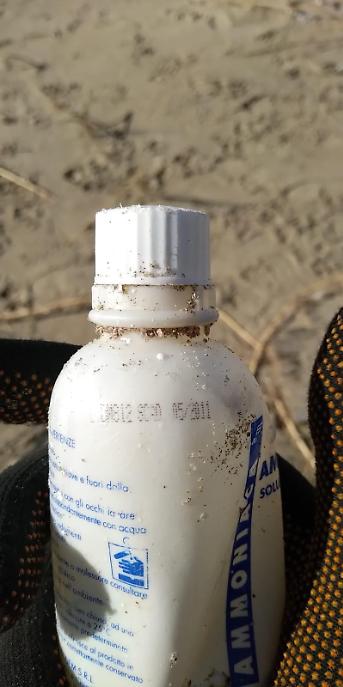 Particolare anche il caso della bottiglia di ammoniaca: si tratta di un recipiente in plastica, ritrovato sempre sulle rive di Tor Caldara, riportante la scadenza nel 2011.