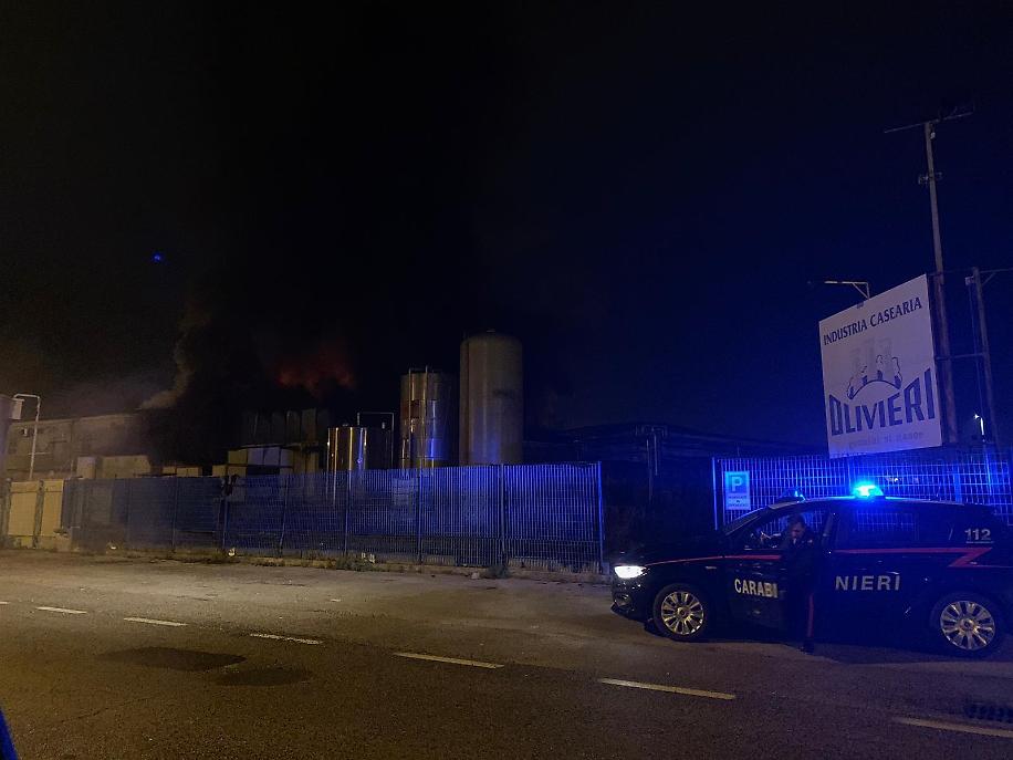 Notte di fuoco nella zona artigianale di Cisterna di Latina: un incendio è stato registrato nell'ex caseificio Olivieri. Sul posto carabinieri e vigili del fuoco