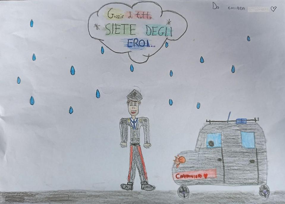 È stato fermato dai carabinieri, per uno dei tanti controlli dovuti all'emergenza del Covid-19. L'uomo, di Fondi, risultato in regola con tutte le normative, oltre ai documenti necessari ha consegnato ai carabinieri anche alcuni disegni. Le artiste erano le sue figlie e le piccole opere rappresentavano alcuni carabinieri e poliziotti, al lavoro sotto alla pioggia. "Grazie di tutto, siete degli eroi" c'è scritto su quei bellissimi fogli, realizzati dalle piccole che ogni giorno, dal balcone di casa, osservano incuriosite e riconoscenti il lavoro dei militari