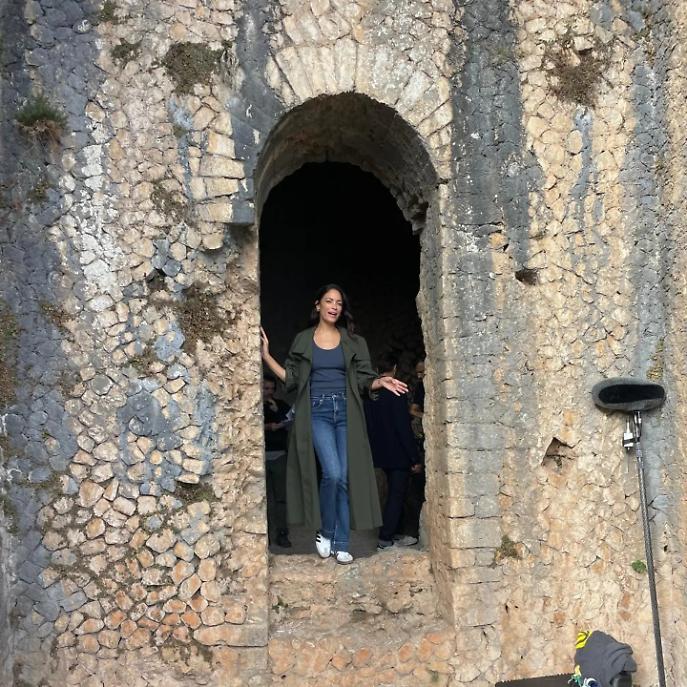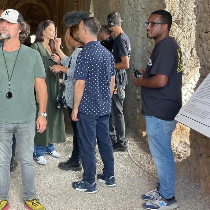 La cantante ha girato alcune scene al Tempio di Giove per il nuovo film di Lucio Pellegrini