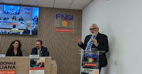 Il presidente della FNSI Vittorio Di Trapani, il presidente di Avviso Pubblico Roberto Montà, la sottosegretaria al Ministero dell’Interno Wanda Ferro, il curatore del Dossier e responsabile dell’Osservatorio parlamentare di Avviso Pubblico Claudio Forleo, il direttore analisi di Acled Andrea Carboni, hanno presentato il dossier relativo alle intimidazioni subite dagli amministratori locali nel corso del 2023, in occasione dell’incontro moderato dal giornalista del Tg3 Fabrizio Feo.