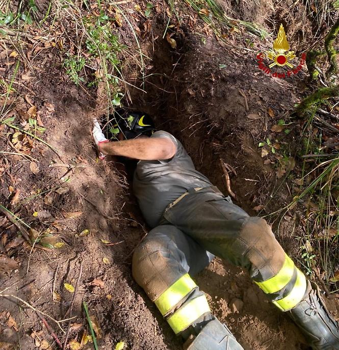 Dopo ore di lavoro in una cavità naturale a Valle di Suio, i Vigili del Fuoco di Castelforte hanno tratto in salvo Fulmine, riconsegnandolo al suo proprietario
